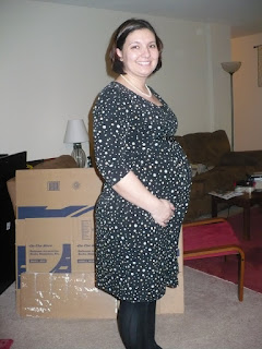 Anyway, I wanted to share the most recent picture, we took this tonight and I must say it makes my belly look pretty big. This is the only maternity dress I bought (since I don’t really dress up a whole lot for work) and I really think it makes me look bigger than I am, but o’well, I am trying to embrace the belly.