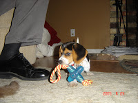 In the Spring of 2005 we added Toby Wilson into our lives. Here’s a picture of him when we first brought him home. He weighed about 5lbs and was smaller than Will’s shoes.